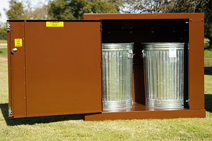 The GARBAGE SAFE is a durable, animal-resistant metal can enclosure that really keeps your garbage safe!